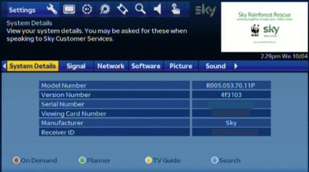 - Use the arrow buttons to choose 5 System Details from the menu then press Select, or just press number 5 on the remote
